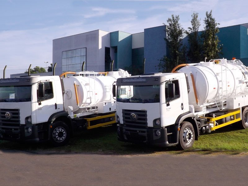 Caminhão combinado com bombas de hidrojateamento e auto vácuo. Utilizado para desobstrução de galerias, bueiros, bocas de lobo, caixas de gordura, tubulações de esgoto de até 2 metros de diâmetro e limpeza de fossa. Serviços de hidrojateamento com solução eficaz.
